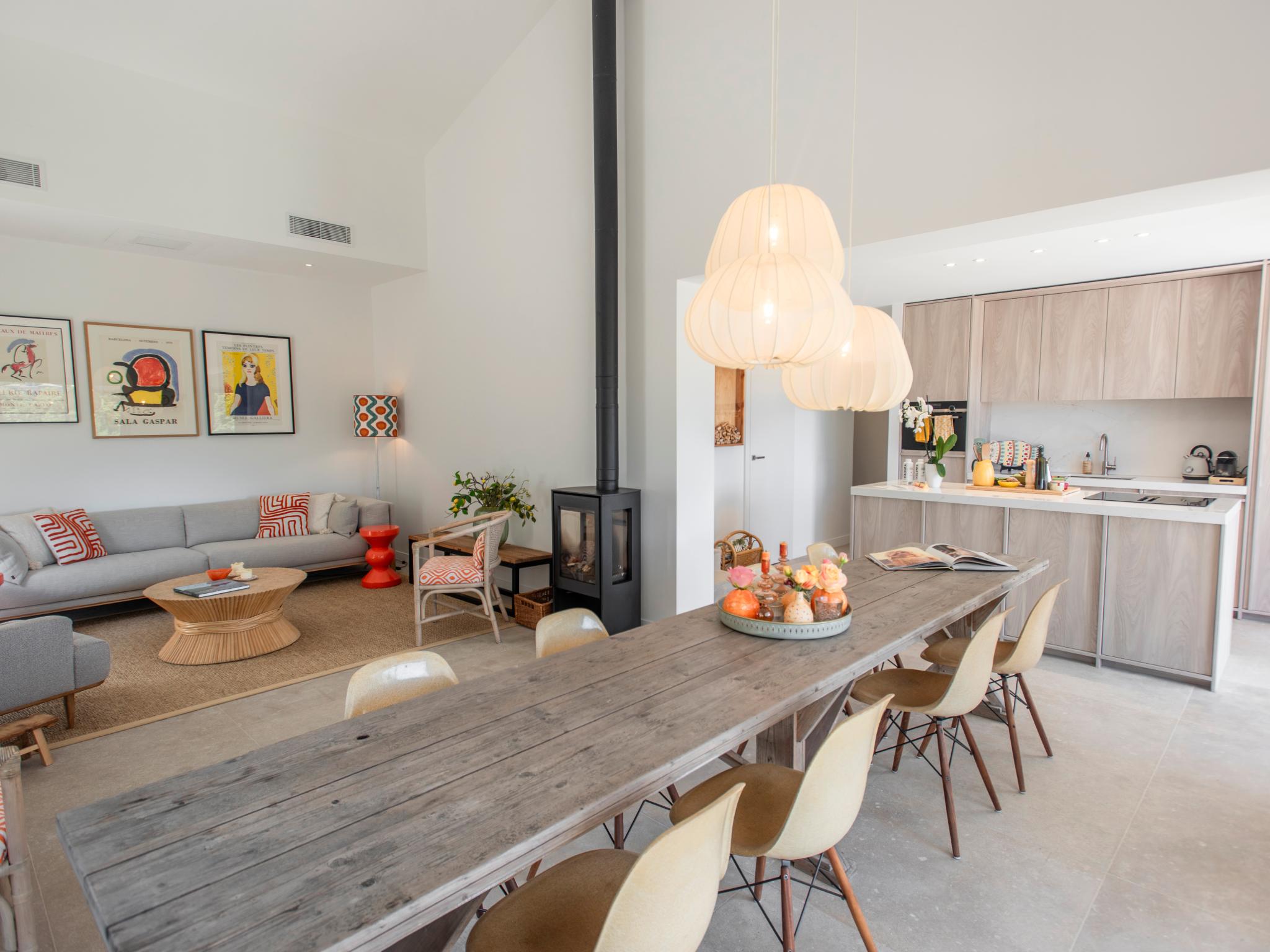 Begane grond: open keuken met waterkoker, broodrooster, fornuis(4 kookplaten, inductie), afzuigkap, koffiezetapparaat(cups), oven(elektrisch), magnetron, afwasmachine, koel-/vriescombinatie, citruspers, Staafmixer , woon/eetkamer met TV(smart TV), eettafel(8 personen), kachel(hout), zithoek, airconditioning , slaapkamer met 2-pers. bed(boxspring, 160 x 200 cm), airconditioning , slaapkamer met 2-pers. bed(boxspring, 160 x 200 cm), airconditioning , badkamer met douche(inloopdouche, Regen), wastafel, wastafel , toilet, wasruimte met wasdroger, wasmachine , berging met stofzuiger, 1x kinderbed (excl. beddengoed), 2x kinderstoel, strijkplank, strijkijzer